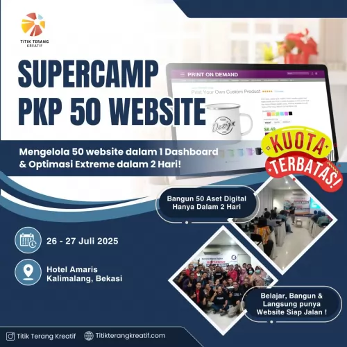 Kami memahami bahwa mengelola banyak website bisa menjadi tugas yang menakutkan jika tidak didukung dengan teknologi yang tepat. Oleh karena itu, kami menawarkan solusi revolusioner: SUPERCAMP PKP 50 WEB yang memungkinkan Anda memiliki hingga 50 website yang mudah dikelola dari satu dashboard pusat. Ini bukan kelas teori. Ini Supercamp praktik langsung, web Anda jadi, SEO langsung nendang, tools langsung jalan, dan ilmu langsung bisa dipakai untuk diri sendiri ATAU jasa untuk klien.