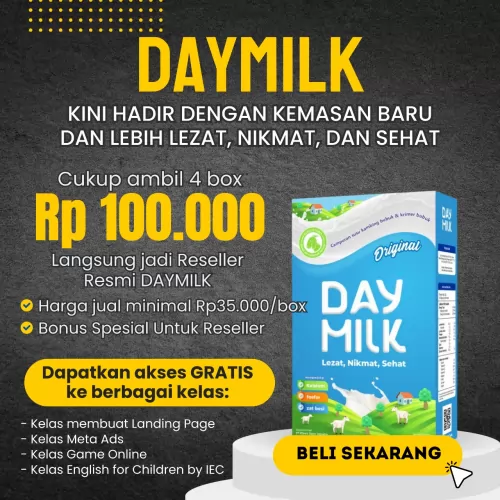 Apakah Anda bermimpi memiliki bisnis sendiri tetapi terkendala modal yang minim? π Apakah Anda mencari peluang usaha sampingan yang tidak memakan banyak waktu, namun potensi penghasilannya menjanjikan? Jika jawabannya ya, maka Anda berada di tempat yang tepat! Saatnya berhenti bermimpi dan mulai bertindak. Kami mempersembahkan sebuah peluang luar biasa yang bisa mengubah hidup Anda: menjadi Reseller Resmi DAYMILK!